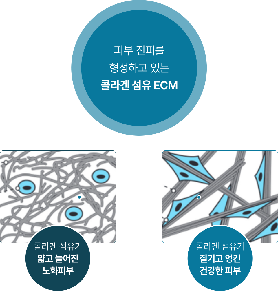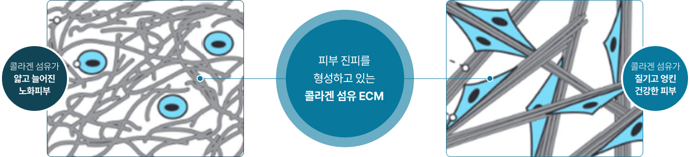노화가 진행되면 섬유아세포와 콜라겐의 활성과 텐션이 감소되어
