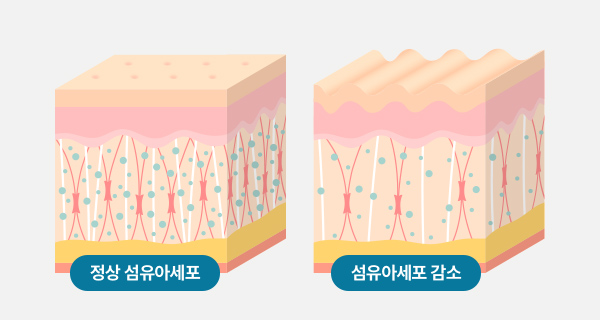 노화가 진행되면 섬유아세포와 콜라겐의 활성과 텐션이 감소되어
