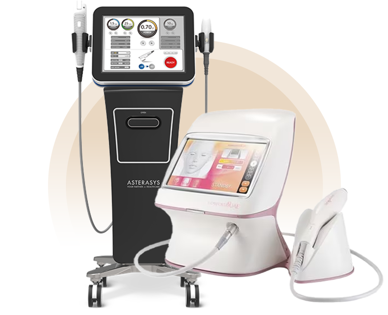 고강도 초음파(HIFU)와 고주파(RF)를 활용한 장비로, 피부 깊숙한 층까지 자극하여 처진 부위를 탄력 있게 리프팅해주며,